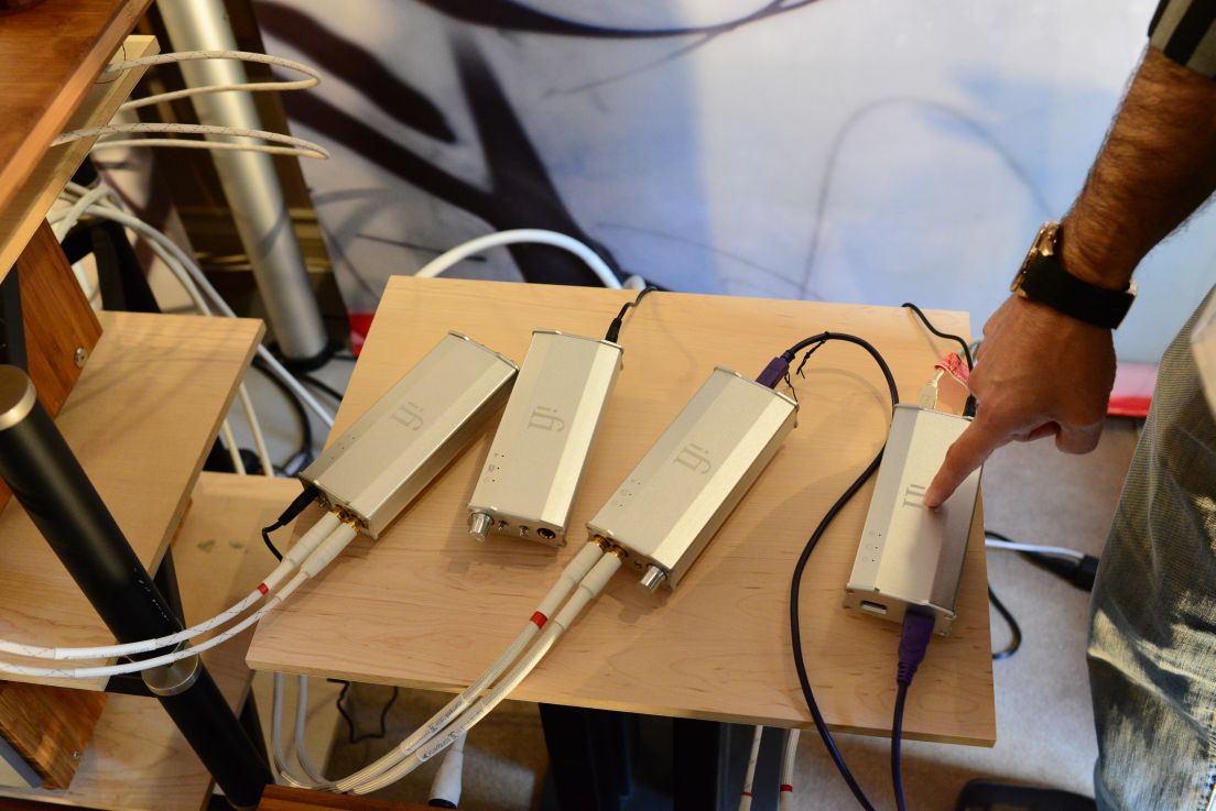 Also on display was a new line of entry level products called iFi, which includes an iCan headphone amp, an iDAC D-to-A converter, an iUSB which is a power product, and an iPhono phono stage which comes with both MM and MC inputs. Each piece is priced around the $500-$700 range.