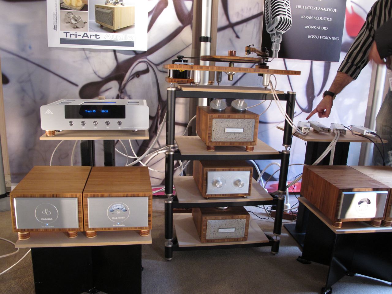 Tri-Art Audio’s turntable which I saw six months earlier at the Montreal show, is now a finished product. It now comes with a bamboo platter, together with Tri-Art Audio’s own tonearm which is also made of bamboo. Unfortunately, it was on static display only so I didn’t get to listen to it for the second time. If I remember correctly, the table is modestly priced at below $3,000.