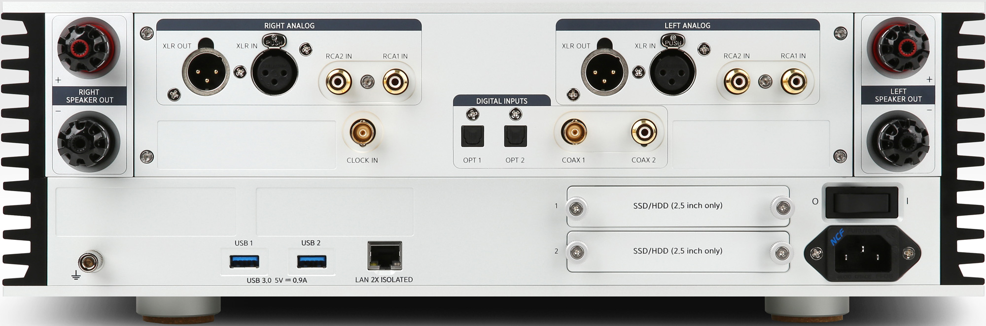 Nearly sixty pounds heavy, the AP20 has the largest footprint of any Aurender before it. Per Kelly, “the case work has been modified to hold the extra electronics (amp modules, power supply capacitors and dual toroidal transformers) and the machined aluminum feet are taller than any other feet supplied with Aurender products. This helps ensure adequate airflow beneath the chassis and keep operating temperatures low. Like other products, it is recommended to have 3-4 inches of space around the sides and top of the unit for optimal heat dissipation.”