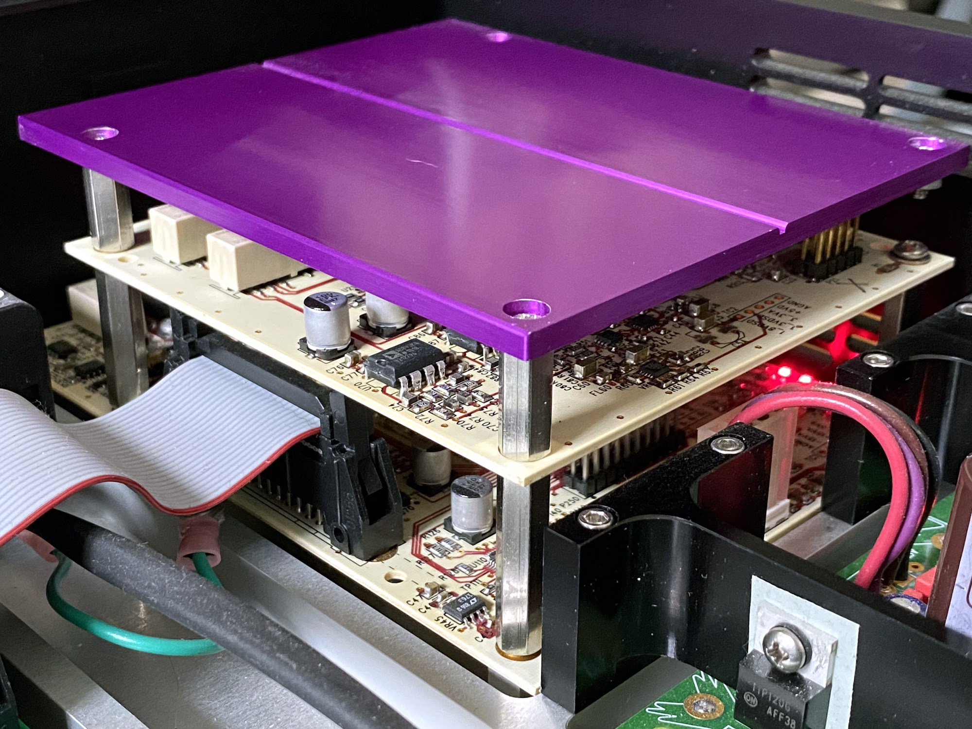 Bricasti M21: (Right channel) Discrete DSD and Ladder DAC on top board, Delta-Sigma DAC on bottom board