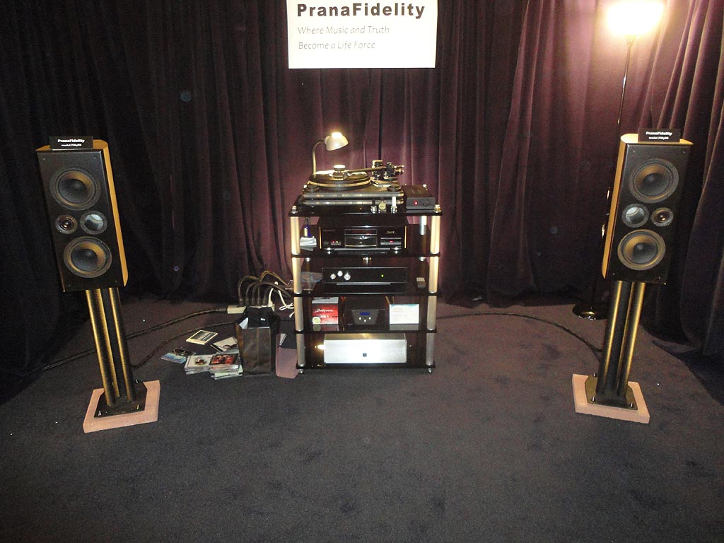 Once in a while stepping into a manufacturer’s room can be an experience which transports me – in this particular case I was transported back in time to my childhood, as PranaFidelity’s Steven Norber was playing children’s songs on the display rig. It wasn’t a demo for a customer either; Steven was clearly enjoying defying stereotypes (pun!) by showing that all genres of music are fair game for system assessment. Even after days of flogging his gear he was nearly giddy with enjoyment of seeing the expressions on the faces of road-weary audiophiles as they struggled to integrate this bizarre demonstration.