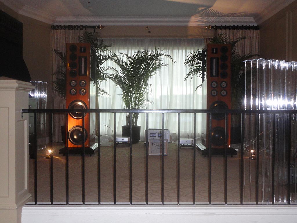 The show had potential to come to a big finish for me as I came at last after four days to the Nola Speakers room. Here was put up a quarter of a million dollar system, but it didn’t sound like a quarter mil. Maybe it was the quarter mile (seeming) distance between the listening seat and the rig that threw things off for me. I kept moving physically closer to engage the speaker and get the sound field to open up wider and more convincingly. The combination of Audio Research Reference CD8 ($9K), Reference 10 Preamplifier ($30K) and Reference 75 Tube Power Amplifier ($9K) didn’t make a strong impression with the Nola Concert Grand Reference Speakers ($197K).