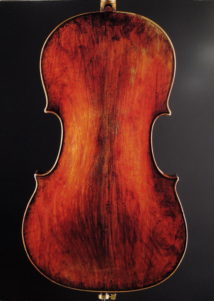 The instrument’s back and ribs are made of poplar; it has a tremendous amount of varnish left for an old instrument. Back in earlier days, collectors really looked after him.