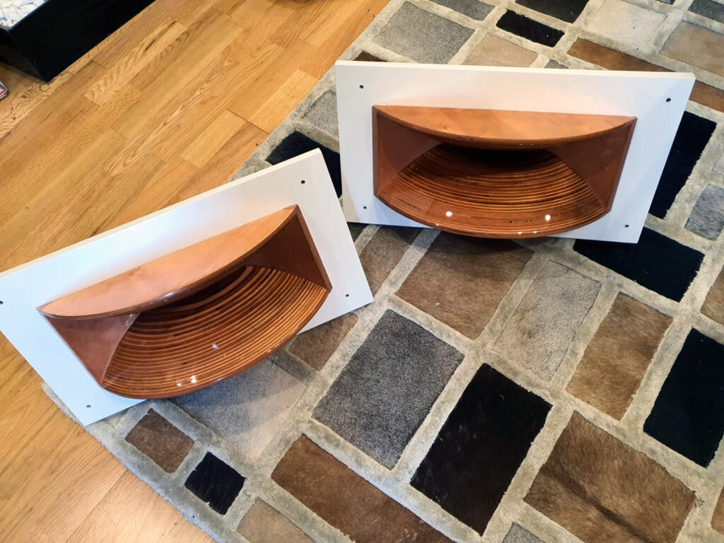 The beauty of the PAP open baffle speakers lies in the simplicity and color schema of the panels in combination with the primary driver. The horn’s auburn wood is warm and inviting to the eye, and it matches well with the baffle color options offered.