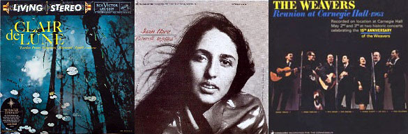 Moving on to female vocals, I found Joan Baez’s voice on the Fairwell, Angelina album on Vanguard Records [Cisco Reissue VSD-79002], to be somewhat slimmer and less full-bodied than usual. The same can be said of Ronnie Gilbert’s voice on “Guantanamera” on the Weaver’s Reunion at Carnegie Hall album [Vanguard VSD 2150], as it sounded as if the weight in her voice was coming from a body that was 30 pounds lighter. The usual “thumping” of the instrument in the background also seems to have less impact than usual; it sounded more like a faint tap than a “thump”.
