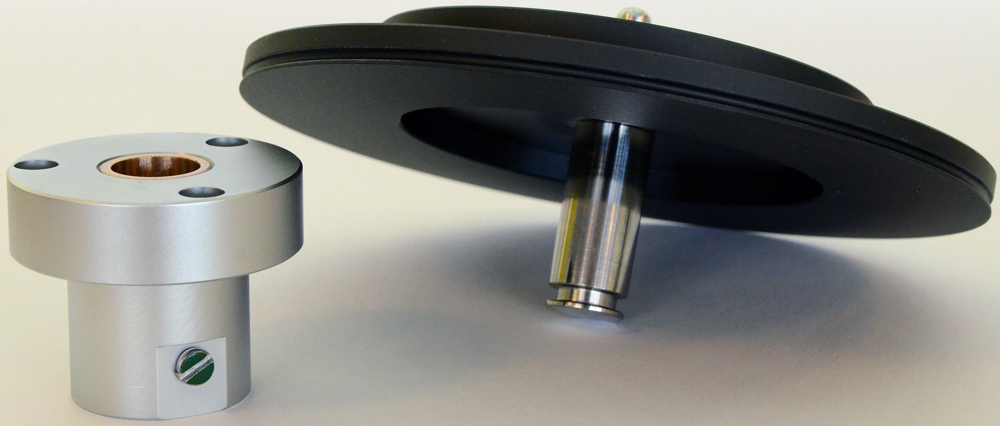 Setting up the turntable and tonearm was very simple. You start by releasing the transport lock of the main bearing. It is locked when it comes out of the box to prevent damages to the bearing. This locking mechanism lifts the sub-platter slightly and keeps it in position. To release the transport lock, you place the chassis vertical and you will see a red screw in the main bearing housing and a green one on the chassis. You simply swap the location of the two screws and sit the table back down and it’s unlocked and you’re ready to place the platter over the sub-platter. The three feet can be turned to level the table. It is recommended that you leave one of them tight against the chassis and use the other two for leveling. This results in more stability.